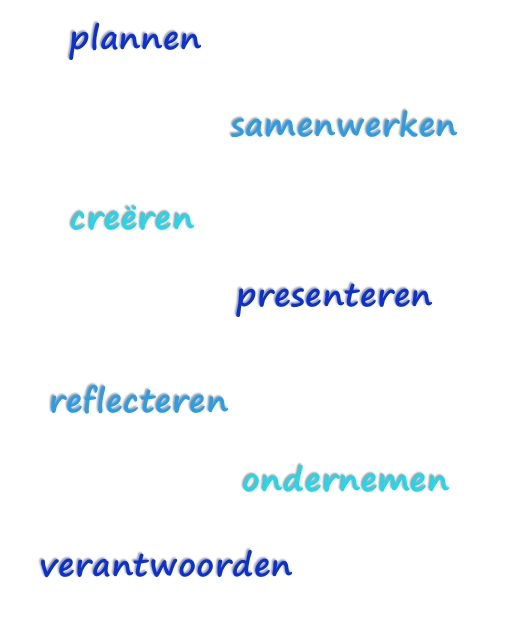 Op onze school doen we allerlei soorten werk. Zo is er verplicht werk; lezen, taal, spelling, rekenen, schrijven en Engels. Maar dat niet alleen! Je mag er ook werken voor jezelf en werken voor en met anderen. Ook is er gezamelijk werk in de stamgroep. Op onze school worden de kinderen gestimuleerd om zelf verantwoordelijk te zijn voor het leren. Ze leren om gebruik te maken van het weekplan en hun eigen werk in te plannen. Samen stellen we leerdoelen vast voor een komende periode, die wij later reflecteren en wanneer nodig bijstellen. Samen kunnen werken betekent ook dat je moet leren om zelfstandig te zijn. 'Leer het mij zelf doen'.